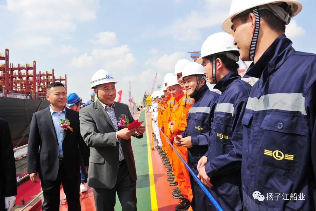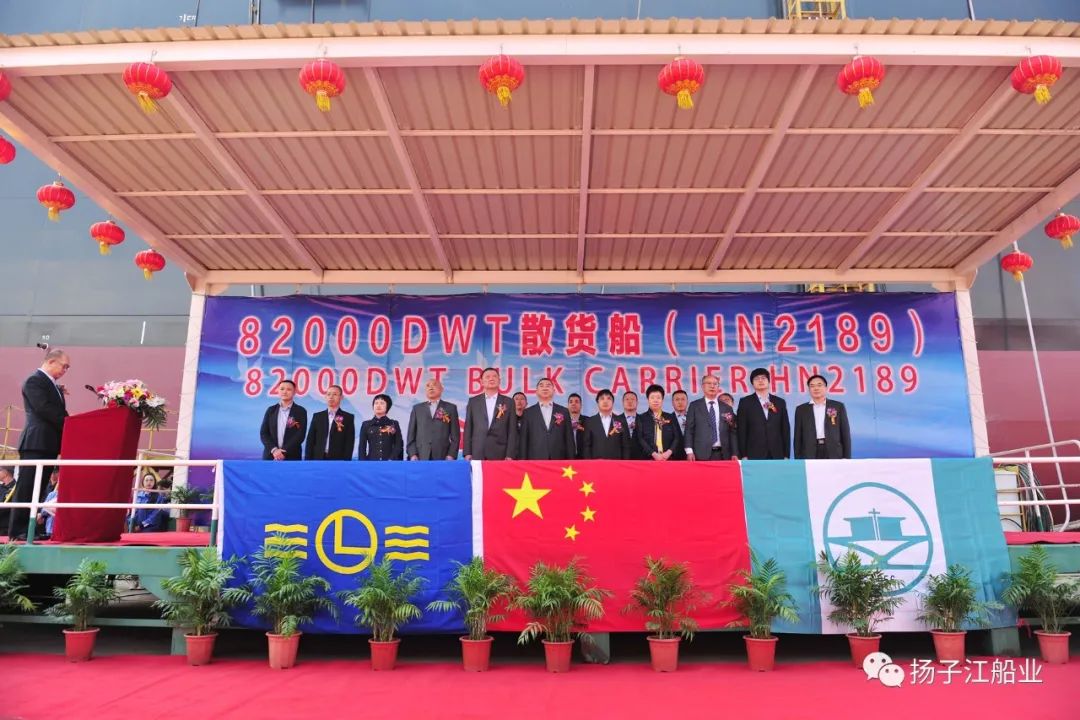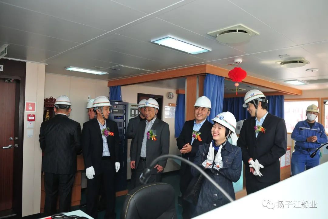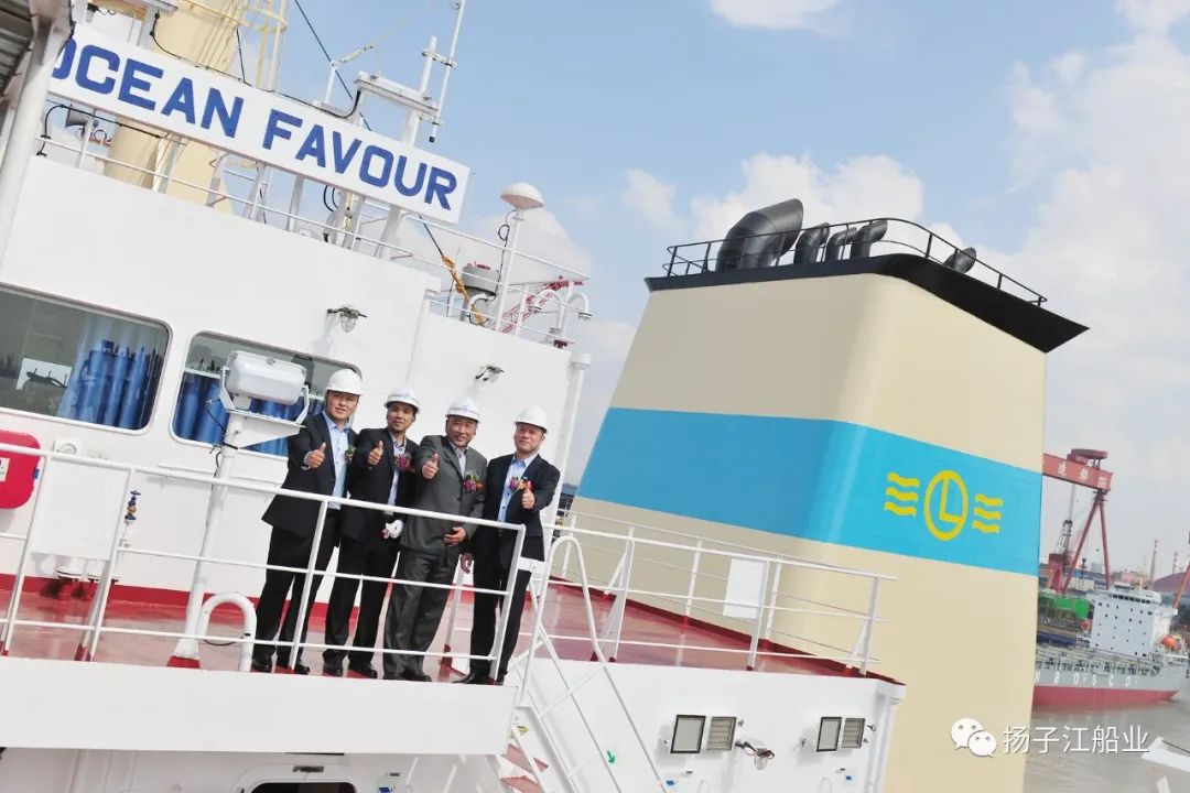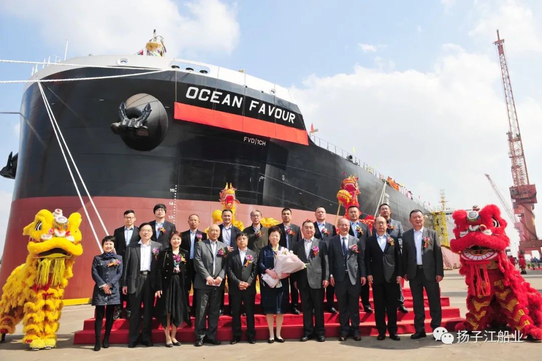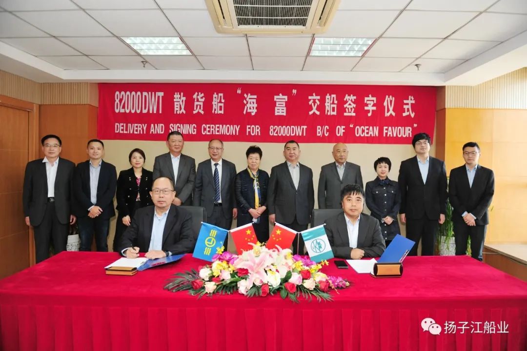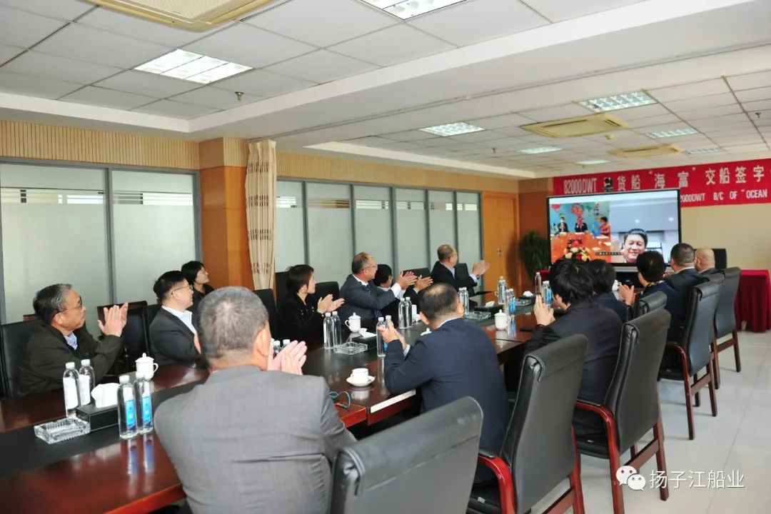 10月25日上午,我集團(tuán)新?lián)P子造船為香港遠(yuǎn)航集團(tuán)建造的82000DWT散貨船“OCEAN FAVOUR”輪命名交付。香港遠(yuǎn)航集團(tuán)董事長、總裁桂四海先生攜其公司主要領(lǐng)導(dǎo)人在香港總部,與我集團(tuán)名譽(yù)董事長任元林先生、副總經(jīng)理杜成忠先生、副總經(jīng)理張濤先生等,以視頻連線的形式進(jìn)行了新船簽字交付。