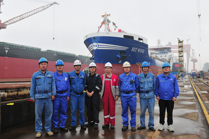 上海港祿航運有限公司總經(jīng)理韓治東先生親臨現(xiàn)場,與中國船級社項目驗船師、船東現(xiàn)場監(jiān)造組等一起見證新船順利出塢,我集團副總經(jīng)理張濤先生以及生產(chǎn)管理部相關(guān)領(lǐng)導(dǎo)和工作人員現(xiàn)場陪同。
