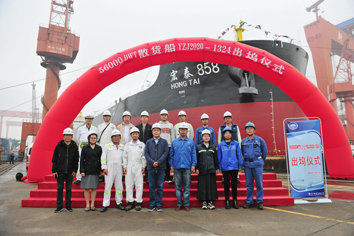 11月5日,新?lián)P子造船為上海港祿建造的第二艘56000DWT散貨船順利出塢。