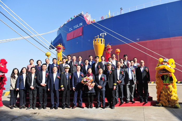 命名人金平女士將新船命名為“CL YULIN”(國銀 玉林)輪,并擲香檳禮,祝福新船在未來的航程中,乘風(fēng)破浪,平安啟歸,為船東以及客戶帶來更高效和更具經(jīng)濟(jì)價(jià)值的服務(wù)。該船是我集團(tuán)為國銀租賃建造的208000DWT散貨船10艘系列船中的第8艘。參加儀式的領(lǐng)導(dǎo)和嘉賓在青島遠(yuǎn)洋華林公司總經(jīng)理劉思成先生以及“CL YULIN”(國銀 玉林)輪首任船長、輪機(jī)長的陪同下參觀了新船并與船員進(jìn)行了交流。