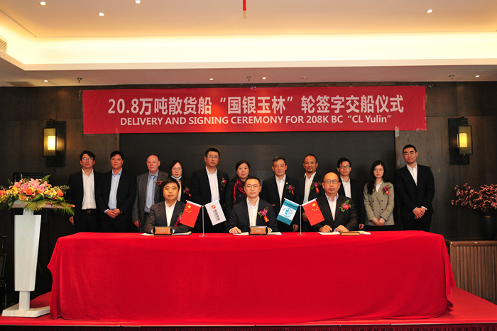 當(dāng)日,在各方代表的共同見證下,國銀金融租賃船舶事業(yè)部副總經(jīng)理劉玉貫先生,我集團(tuán)副總經(jīng)理杜成忠先生,集團(tuán)副總經(jīng)理張濤先生分別代表各方簽署交船文件,“CL YULIN”(國銀 玉林)輪順利交付。11月10日下午,“CL YULIN”(國銀 玉林)輪開啟首航,再為國銀租賃船舶租賃業(yè)務(wù)錦上添花。