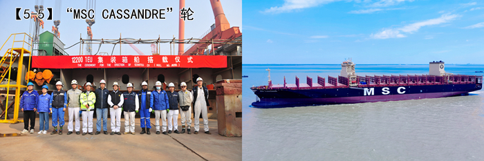 該輪總長328.46米,型寬48.2米,型深27.2米,設(shè)計(jì)標(biāo)箱12200TEU,水面以上最大高度49.8米。2021年5月8日從舟山以分段狀態(tài)由甲板駁船運(yùn)至集團(tuán)新?lián)P子造船,12月7日進(jìn)塢搭載,于今年3月22日出塢,5月16日離泊試航。“MSC CASSANDRE”輪的交付,標(biāo)志著我集團(tuán)為SEASPAN船東續(xù)建的5艘12200TEU系列超大型集裝箱船項(xiàng)目圓滿完成。其他四艘分別是:“MSC CAROLE”、“MSC ALANYA”、“MSC RAYSHMI”、“MSC EUGENIA”。