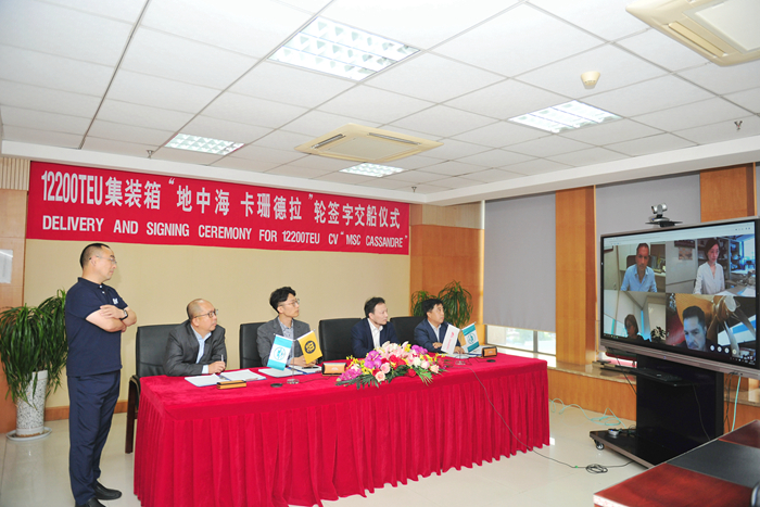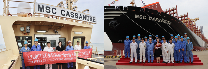 6月1日,我集團(tuán)為SEASPAN船東建造的第五艘12200TEU超大型集裝箱船——“MSCCASSANDRE”輪,離開船廠碼頭,開啟首航。5月30日,通過多方視頻會議方式,“MSC CASSANDRE”輪完成云交付。揚(yáng)子三井司凌鈺女士受邀擔(dān)任新船命名人,為新船命名并砍纜祈福。