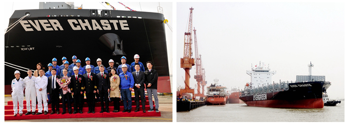 3月30日上午,我集團(tuán)為日本PSM公司建造的第二艘1800TEU箱船在新?lián)P子造船順利命名交付。在儀式現(xiàn)場(chǎng),通過(guò)視頻連線方式,愛(ài)媛銀行常務(wù)董事MUNEO TSUBOUCHI先生將新船命名為“EVER CHASTE”輪,船東現(xiàn)場(chǎng)辦經(jīng)理Masahiro Shimizu先生,為新輪砍纜擲香檳,為新船首航祈福。中午時(shí)分,鞭炮齊鳴、禮炮歡送,“EVER CHASTE”輪開(kāi)啟首航。至此,我集團(tuán)為日本PSM公司建造的兩艘1800TEU集裝箱船,完美收官。