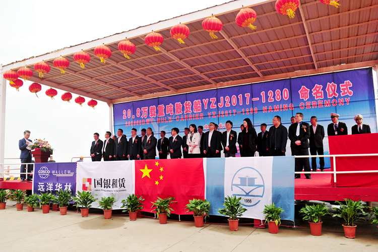 4月23日上午,我集團為國銀租賃建造的第10艘208000DWT散貨船,順利命名交付。命名人左天琦女士,國銀租賃業(yè)務審批部總經(jīng)理張旭先生,國銀租賃船舶事業(yè)部副總經(jīng)理劉玉貫先生,美國船級社(ABS)華中地區(qū)經(jīng)理宋愛民先生,北港航運上海代表處首席代表陶元穎先生,Howe Robinson董事羅雅潔女士,青島遠洋華林總經(jīng)理劉思成先生,SMC技術(shù)總監(jiān)Steve先生,708所所長助理、民船部主任朱建章先生,以及我集團副總經(jīng)理杜成忠先生、副總經(jīng)理周科偉先生等相關(guān)領(lǐng)導和嘉賓出席了儀式。