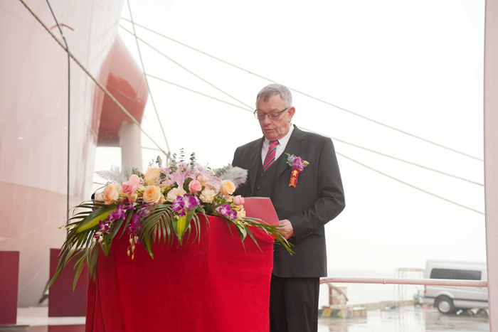 教母中信銀行蘇州分行副行長倪衛(wèi)芳女士,HARTMANN董事會執(zhí)行總監(jiān)Ulrich Adami先生、董事會商務(wù)總監(jiān)Jan-Lars Kruse先生、新造船經(jīng)理Ionut Cornea先生、大中華區(qū)區(qū)域經(jīng)理龍葉飛先生,DNV船級社江陰站經(jīng)理史勇林先生,中信銀行太倉分行行長顧衛(wèi)先生,三井物產(chǎn)上海井上伸一先生、住田直也先生、田野先生,揚子江船業(yè)集團副總經(jīng)理丁建文先生,集團副總經(jīng)理兼揚子三井總經(jīng)理宋書明先生,揚子三井CFO石丸雄次先生、COO田村光路先生、副總經(jīng)理陳國強先生及總經(jīng)理助理中尾慎一先生以及各合作方、員工等代表參加了命名交船儀式。